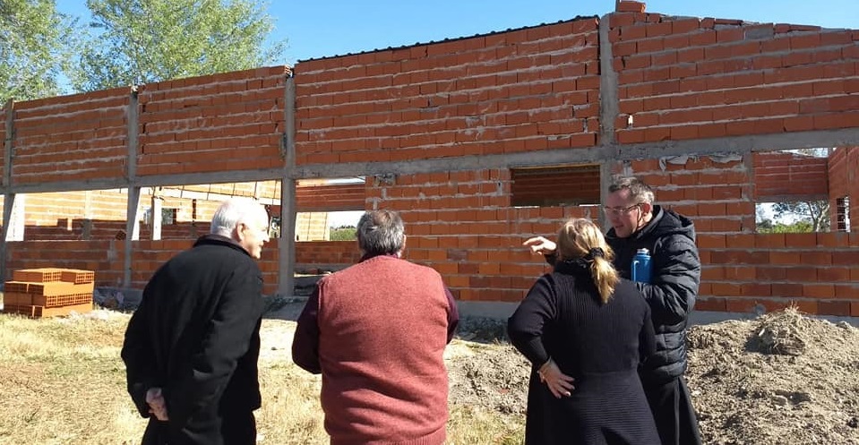 Puiggari visitó la construcción de ese complejo Grávida y Conin junto al párroco de Santa Elena, Leonardo Yacob, al intendente de Santa Elena, Silvio Moreyra, y a su esposa.