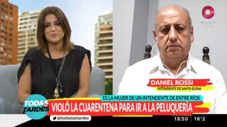 Rossi salió a responder por la situación y aseguró: “Mi esposa no rompió la cuarentena, el peluquero vino a su casa". "Ella es concejal y él es funcionario de Cultura municipal designado por mí", sostuvo en el programa Todas las Tardes que conduce la paranaense Maju Lozano por El Nueve.