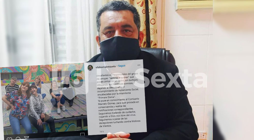 En Instagram, hizo un posteo acompañado por la foto en la que se puede ver a su esposa y sus amigas, sin distanciamiento social ni barbijo. La foto había generado comentarios en el pueblo y ante esa situación, el intendente se anticipó y dio aviso al comisario local, Marcelo Gómez, quien procedió a realizar el acta correspondiente por la violación del distanciamiento social.