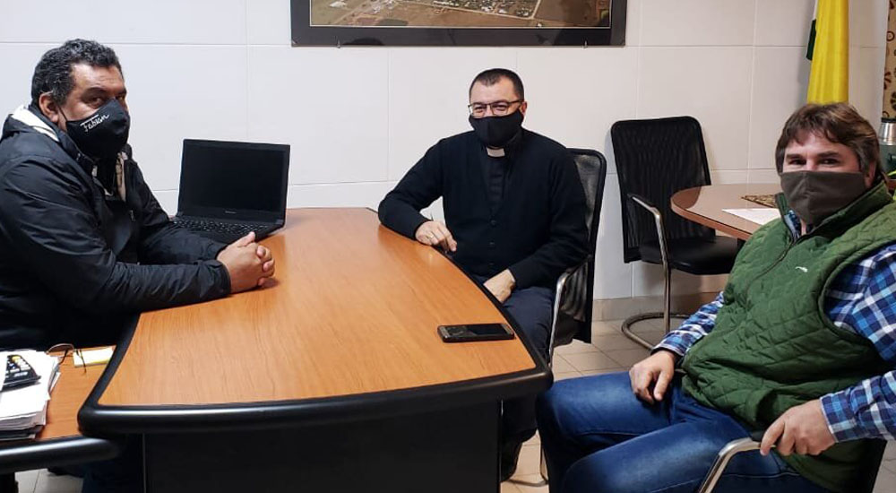 Este jueves, el jefe comunal y el cura mantuvieron un encuentro en el municipio -también participó el viceintendente Gilig-, en el cual analizaron la normativa vigente con respecto a las actividades religiosas que ya están permitidas y que están reguladas por el decreto municipal N° 163.
