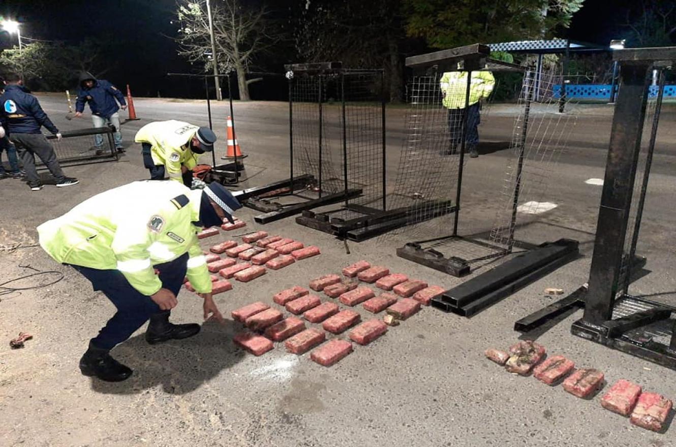 Al avanzar con el control del rodado y su carga, se corroboró que transportaba motores de lavarropas, pero dentro de unos canastos metálicos construidos a tal efecto, gracias al accionar de la perra narco-detector Lola junto con su guía, se halló la presencia de estupefacientes.
