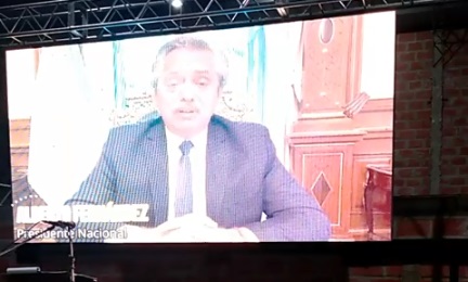 Según contó el propio Fernández, el intendente Fabricio "Gino" Mesquida (PJ) le pidió un saludo por el cumpleaños de la ciudad y el presidente accedió.