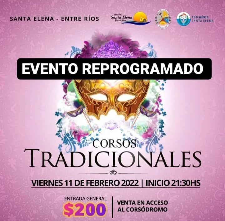 La Municipalidad de Santa Elena comunicó este viernes por la tarde noche que se reprogama la primera noche dle corso tradicional por inclemencias climáticas.