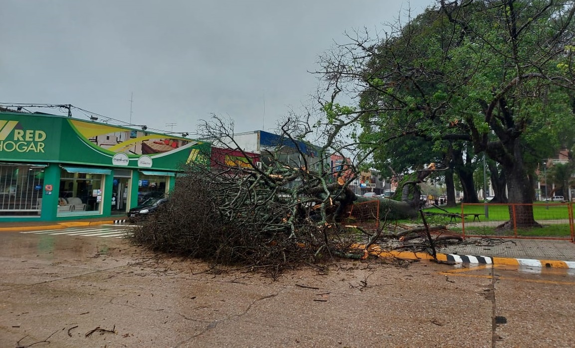 Un intenso temporal que incluyó fuertes lluvias y viento, provocó la caída de un árbol de grandes dimensiones en la intersección de calles Moreno y Echagüe de La Paz, en el centro de la ciudad, la mañana de este jueves. El municipio emitió un comunicado en el que solicitó "circular con precacución" por la zona.