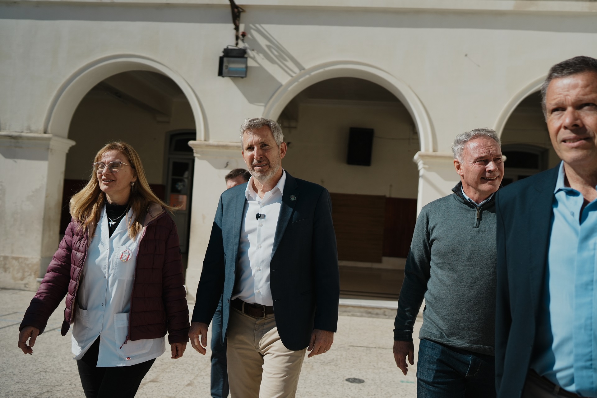 Junto al ministro de Infraestructura, Darío Schneider, el primer mandatario entrerriano se hizo presente en esa escuela NINA que tiene una matrícula de casi 500 alumnos aproximadamente, entre nivel inicial y primario. Allí fueron recibidos por su vicedirectora, Nancy Wendler, con quien efectuaron una recorrida.