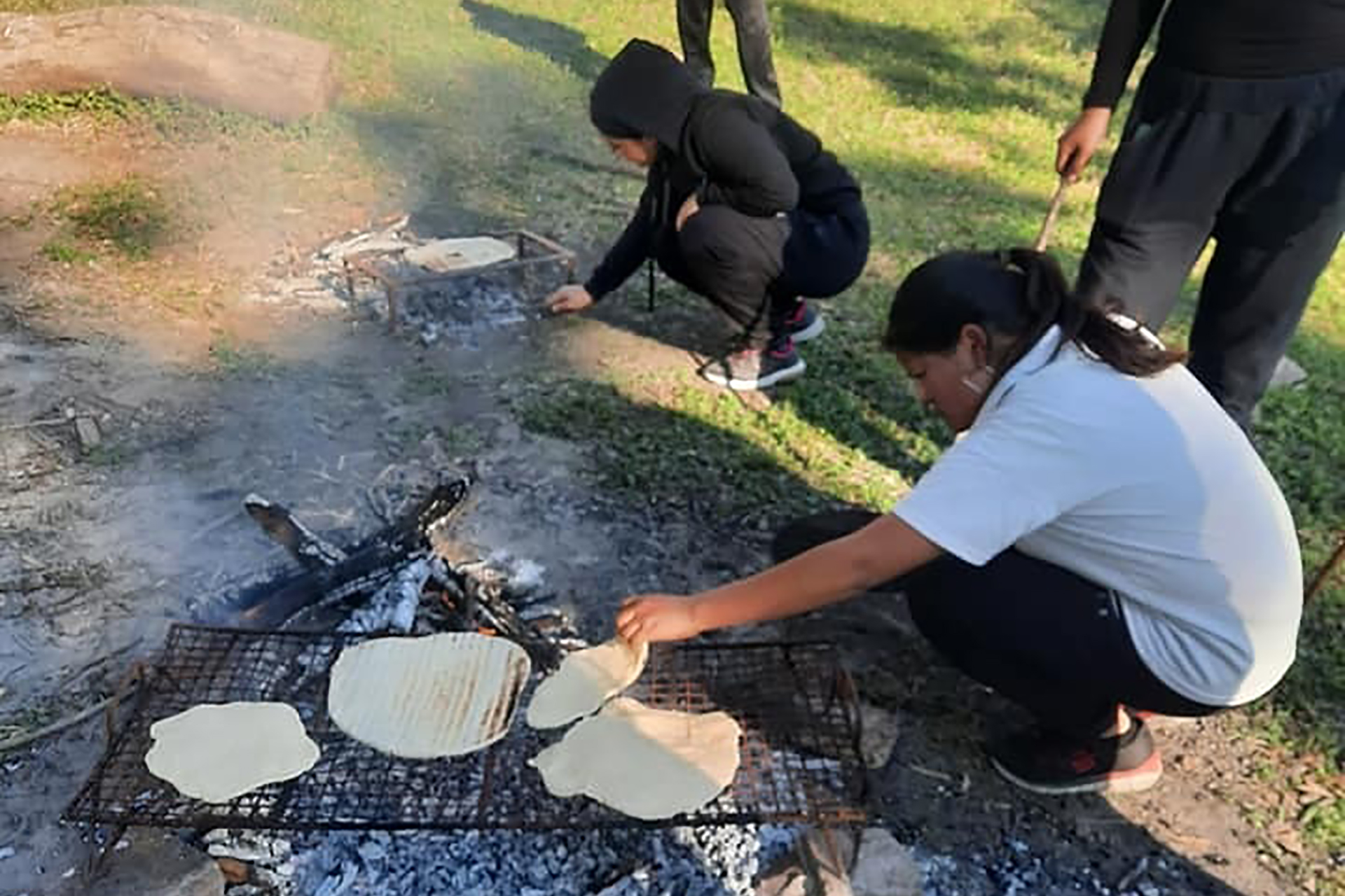 Estudiantes de 3ro. y 6to. año del Instituto D-103 Santa Rosa de Lima, de Santa Elena, participaron del taller en la planta campamentil del Centro de Educación Física Nº 27 de Santa Elena.