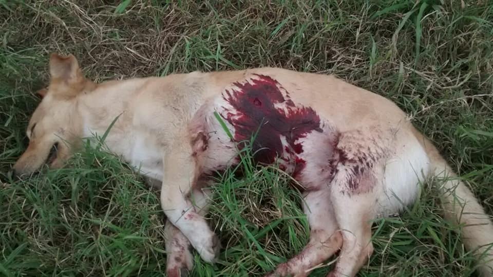 Una imagen de un perro muerto a tiros circuló este miércoles a través de redes sociales y grupos de Whatsapp en Cali.