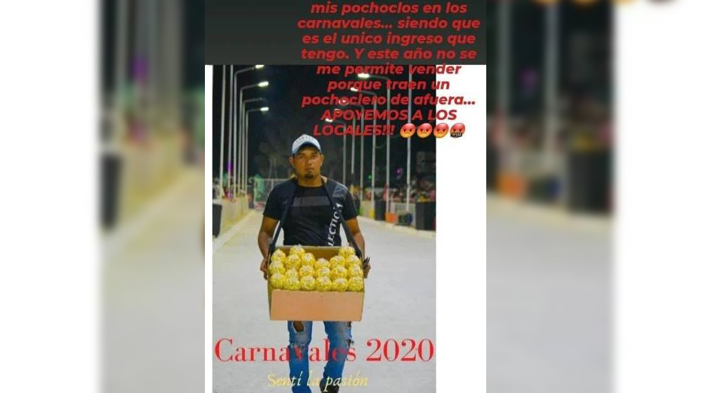 El posteo lo realizó Exequiel Gonzalez, un joven que afirmó que "todos los años vendo pochoclos en los carnavales" y que este año "no se me permite vender porque traen un pochoclero de afuera".