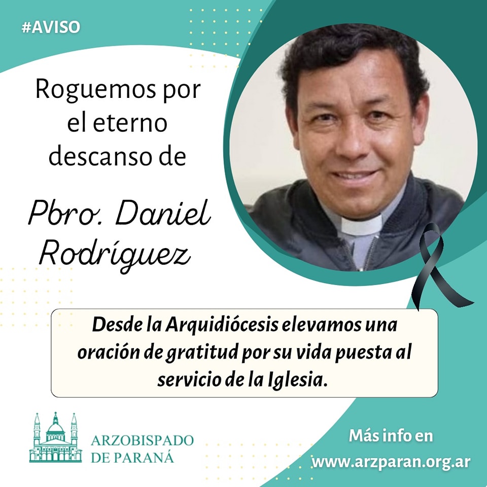 Expresaron, además: "Oramos por su eterno descanso, al tiempo que le pedimos a Dios el consuelo para su familia en estos momentos tan dolorosos y rogamos para él el premio de la vida eterna como paga a su incansable labor pastoral".