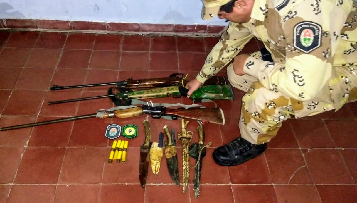 Los propietarios de las armas presentaron la documentación correspondiente (Credencial de Legítimo Usuario y Credencial de las Armas de Fuego), pero como no contaban con permiso de caza ni autorización por escrito del propietario del campo, se encontraban realizando la actividad utilizando luz artificial y habían cazado una especie vedada como el gazuncho, se les secuestraron las armas y se les decomisaron las especies cazadas bajo acta por infracción a la Ley Provincial de Caza N° 4.841, precisaron las fuentes policiales.