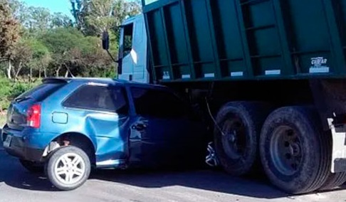 Según indicó el camionero al dialogar con efectivos policiales, al subir a la cinta asfáltica, el vehículo menor lo impactó en el lateral.