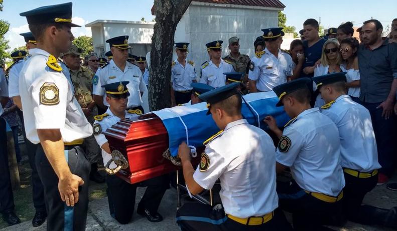 En el texto, la Policía señaló que "en la ciudad de Santa Elena se observó una masiva concurrencia de personal policial, vecinos, amigos y familiares del Suboficial fallecido", que "se le rindieron los honores correspondientes por su trágica partida en acto del servicio" y que los protocolos de rigos fueron cumplidos "ante la congoja de todos los presentes".
