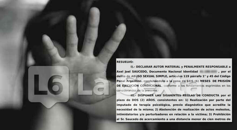 Un joven de Santa Elena, de 24 años, fue condenado por el delito de abuso sexual simple en perjuicio de una nena de 11 años. Fue en el marco de un acuerdo de juicio abreviado, donde admitió haber violentado la integridad sexual de la niña el 25 agosto de 2017, cuando él tenía 21 años. El sentenciado es Axel Joel Saucedo.