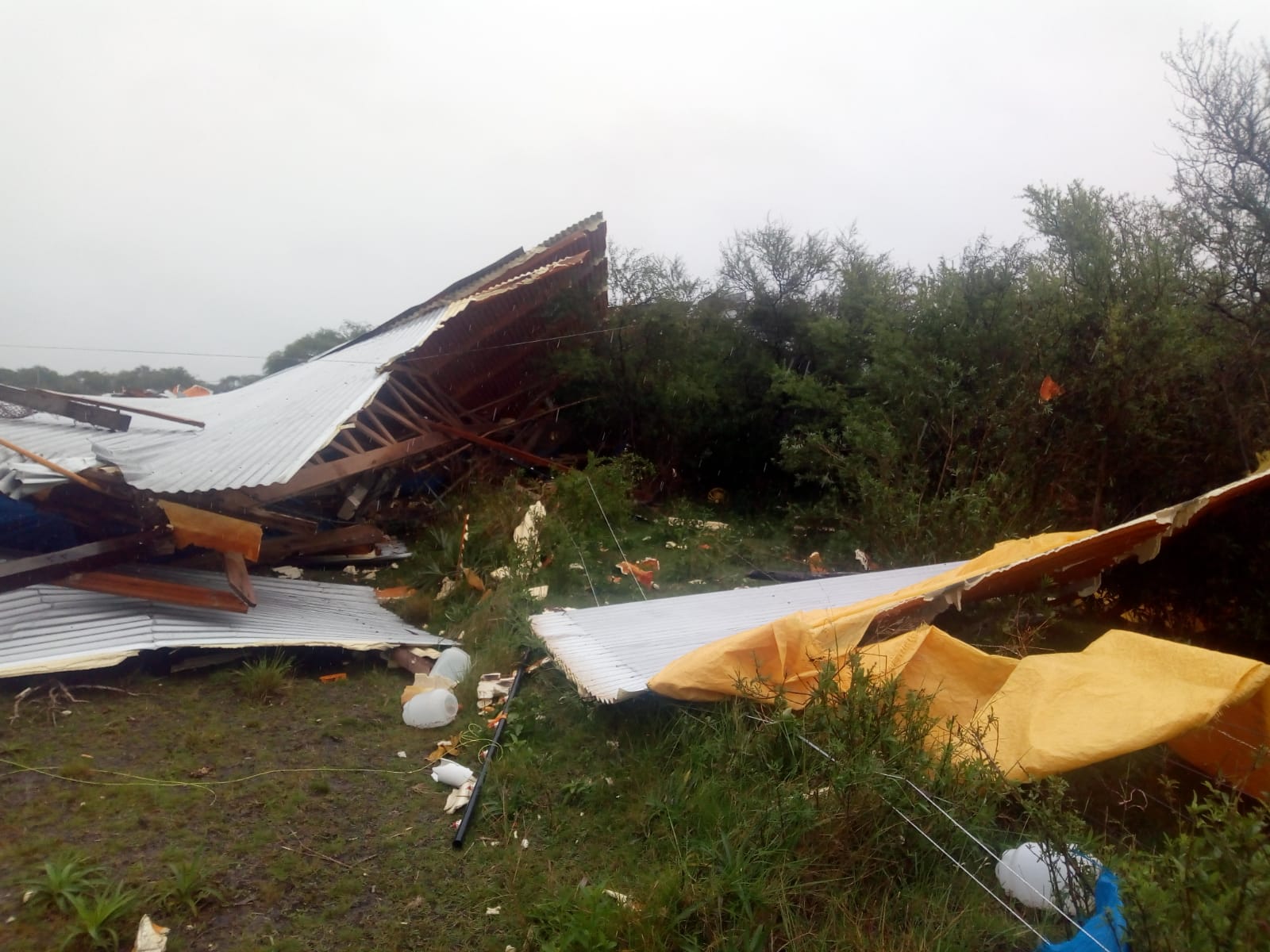 Según pudo registrar La Sexta, los intensos vientos volaron completamente el techo del establecimiento La Merced de producción de pollos, que integra el Grupo Las Camelias, propiedad del productor Gustavo Kunhn, domiciliado en Sauce de Luna, departamento Federal.