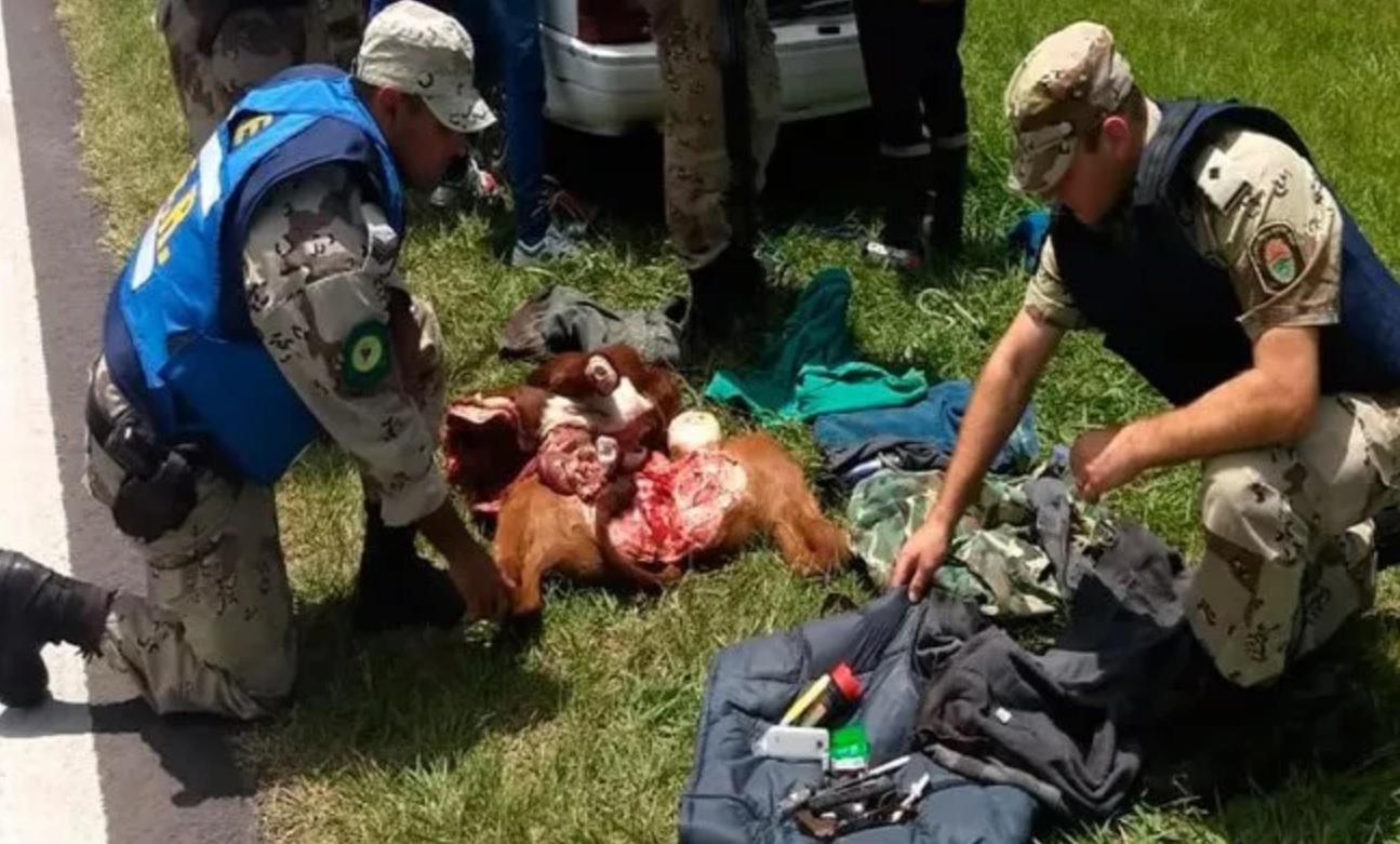 Angulo y los demás cuatreros fueron interceptados por personal policial ese mismo día, alrededor de las 11,10, en inmediaciones de Ruta N° 12. En el vehículo trasladaban "el ternero faenado con la única faltante de su cabeza, junto a un aire comprimido modificado a calibre .22 con cinco cartuchos calibre .22, un cuchillo con mango de madera de marca Tramontina, una linterna de color verde, y piezas de ciervo axis".