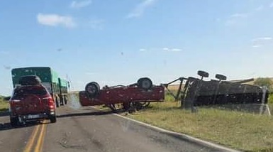 Una camioneta con acoplado volcó sobre la Ruta Nacional N° 12 en jurisdicción de El Solar, departamento La Paz.