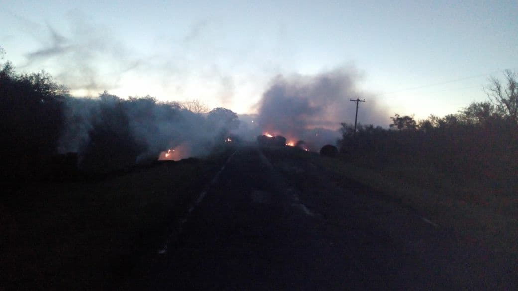 Por causas que se tratan de establecer, la carga de un camión que transportaba rollos de alimentos para hacienda, se prendió fuego y se desparramó, ardiendo, sobre la ruta.