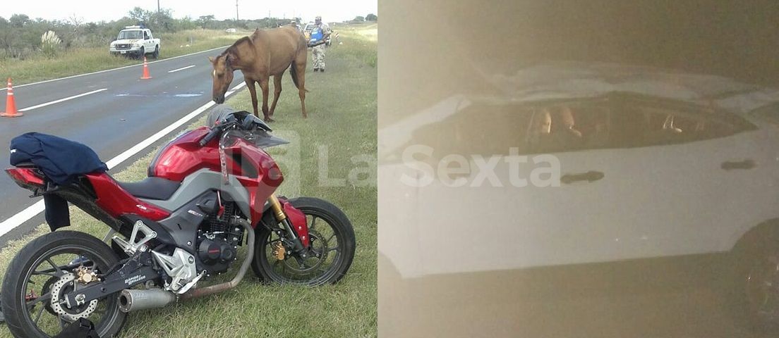 El mismo día por la mañana, en jurisdicción de Comisaría Primera, sobre el kilómetro 593 de la Ruta Nacional N° 12 un motociclista, quien iba al mando de una Honda modelo CB de 190 cc, chocó un caballo suelto que se encontraba sobre la calzada. Como consecuencia del impacto, afortunadamente el conductor del rodado, un joven vecino de Santa Elena, solo sufrió lesiones de carácter leves. Por su parte, el equino resultó con fractura de una de sus patas delanteras. En el lugar trabajó personal de la Brigada Delitos Rurales de La Paz y Brigada de Rescate y Salvamento Urbano (BRYSU).