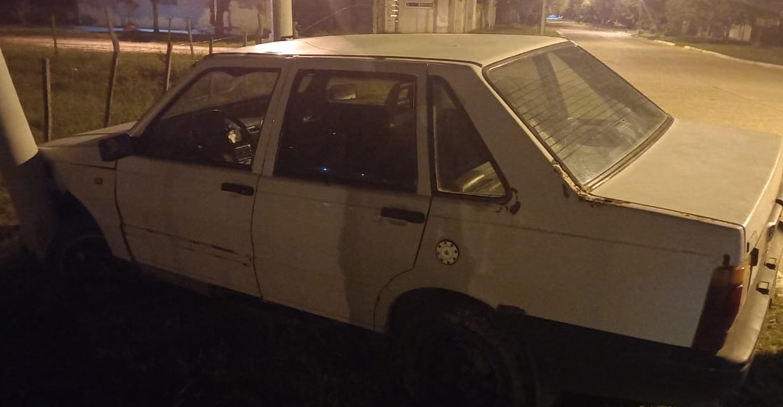 Un auto chocó contra un poste de cableado telefónico la madrugada de este sábado en Santa Elena. Afortunadamente, no se registraron heridos.