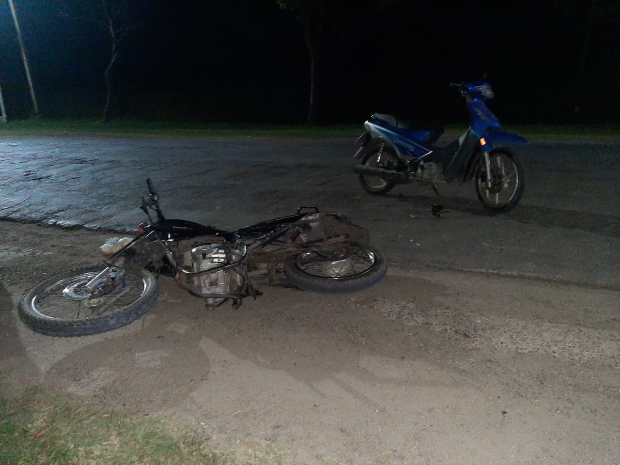 Desde la Departamental La Paz de Policía se informó que alrededor de las 20.30, por causas que se tratan de establecer, "se produjo la colisión de frente entre dos motocicletas, una Corven Energy 110, conducida por una joven de 15 años con domicilio en Barrio 120 Viviendas, y una moto Corven Triax 150 conducida por un hombre de unos 43 años con domicilio en Colonia Oficial N° 12".