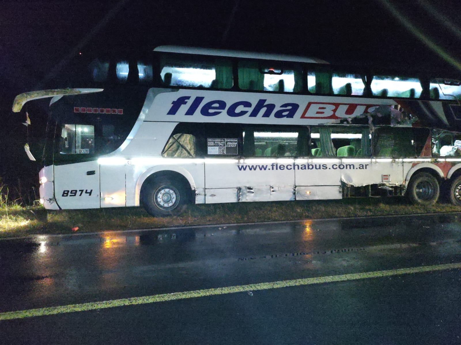 Un colectivo Flecha Bus fue chocado en su parte lateral izquierda por un camión, la madrugada de este martes en el kilómetro 18 y 1/2 de la Ruta Provincial N° 6, cerca de La Paz. Como consecuencia, cuatro personas resultaron con heridas de carácter leve.