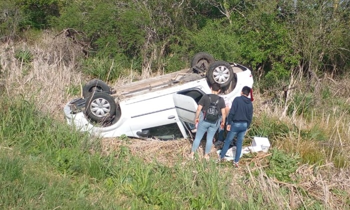 Un auto en el que una familia viajaba desde Paraná hacia Bovril, volcó este jueves a la altura del kilómetro 105 de la Ruta Nacional N° 127.