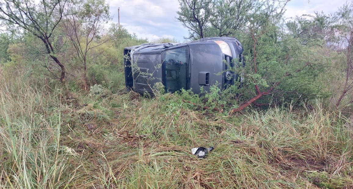 Policías que se transportaban en una camioneta protagonizaron un vuelco en el kilómetro 592 de la Ruta Nacional N° 12, cerca de La Paz, la mañana de este lunes.