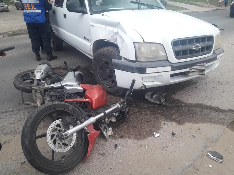 Un fuerte impacto entre una camioneta Chevrolet S10 y una moto, con el resultado de un herido, tuvo lugar en la zona del ingreso a la ciudad de La Paz, sobre Avenida Hermanos Kennedy, este martes por la tarde.