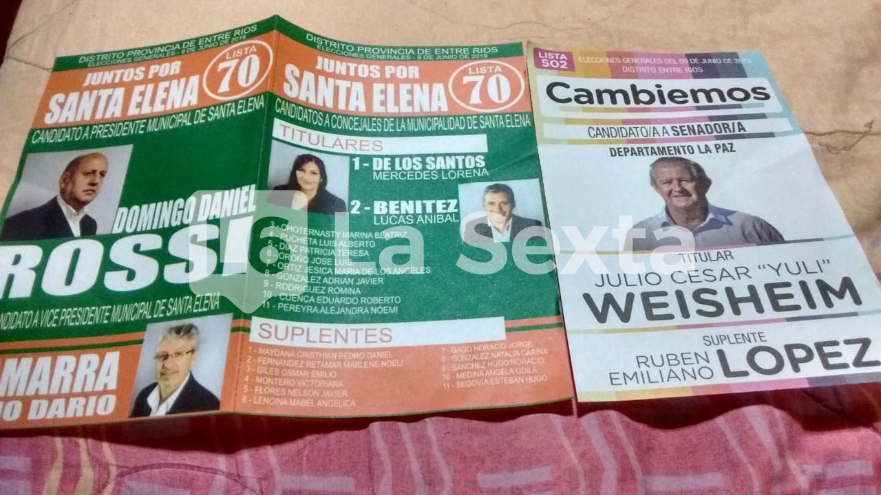 Es con la lista del "Dani", como conocen popularmente al exintendente por cuatro períodos y exvicegobernador de Entre Ríos, sus militantes entregan también, casa por casa, la boleta del candidato a senador por Cambiemos, Julio César Weisheim, actual intendente radical de Piedras Blancas, según pudo conocer La Sexta.