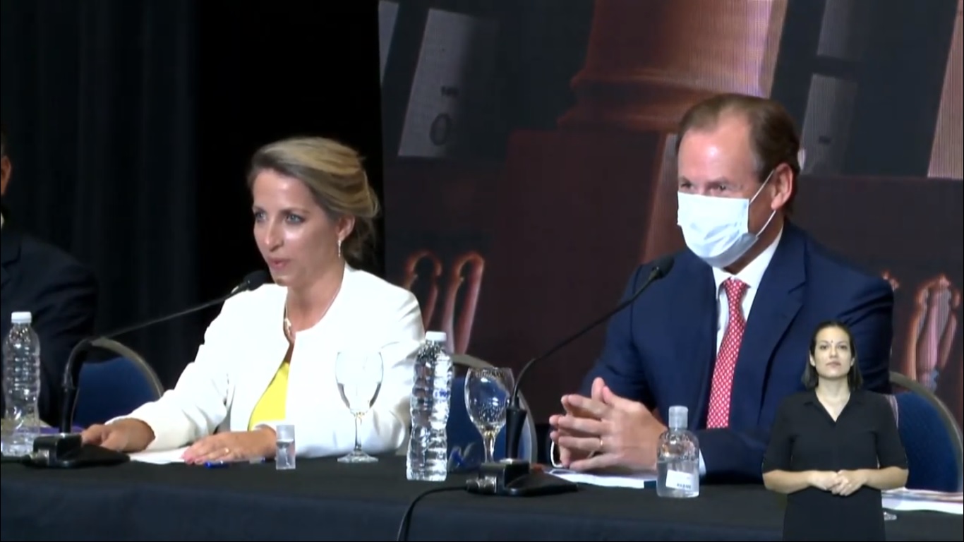 "Casi me siento en tu lugar", le dijo la vicegobernadora María Laura Stratta al mandatario y él le respondió, risueño, con una pregunta que se escuchó claramente en la transmisión oficial a través de los micrófonos encendidos, según pudo registrar La Sexta: "¿Será una premonición?".