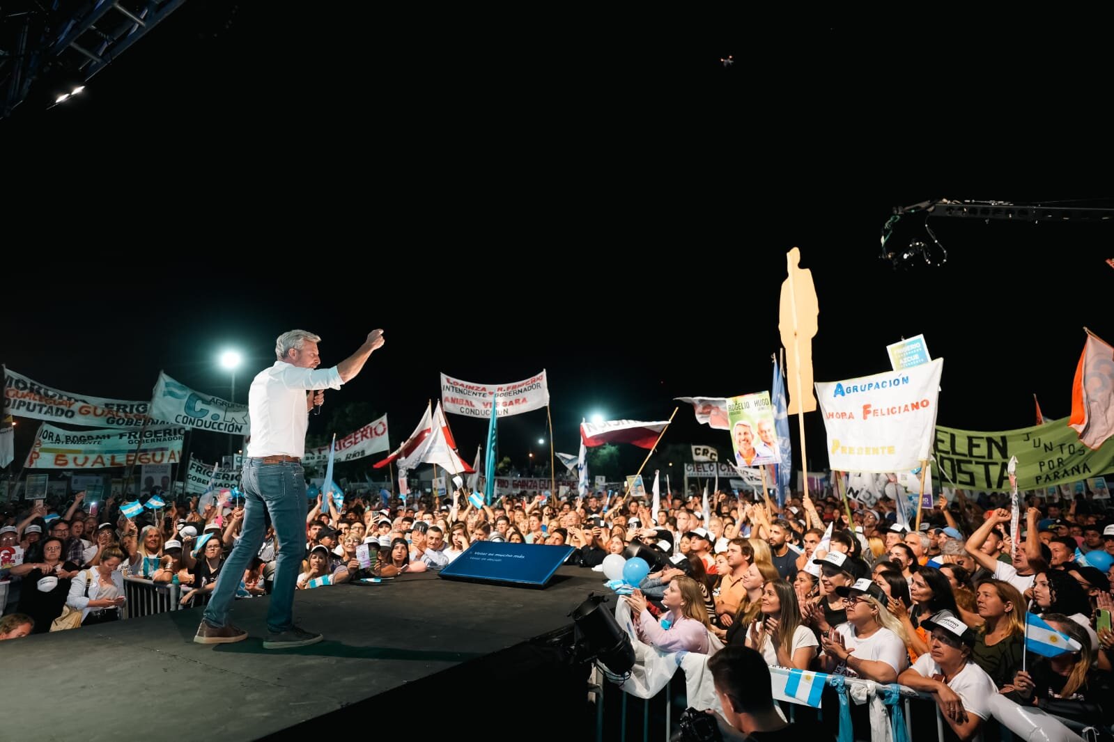 Este jueves por la noche, Frigerio realizó su último acto de campaña de cara a las elecciones generales de este 22 de octubre en la cancha de fútbol del Club San Lorenzo.